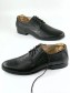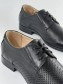 Туфли выполнены из натуральной черной кожи высокого качества со сквозной перфорацией в носовой части, область пятки выполнена без перфорации. Для комфорта посадки обуви на ноге в верхней части модели предусмотрена классическая трехрядная шнуровка. Туфли имеют низкий каблук и прочную подошву с небольшим протектором.
