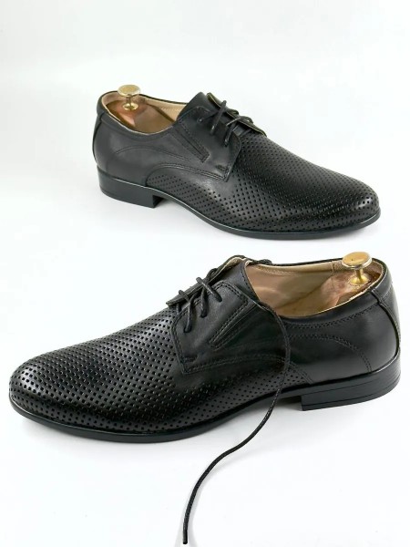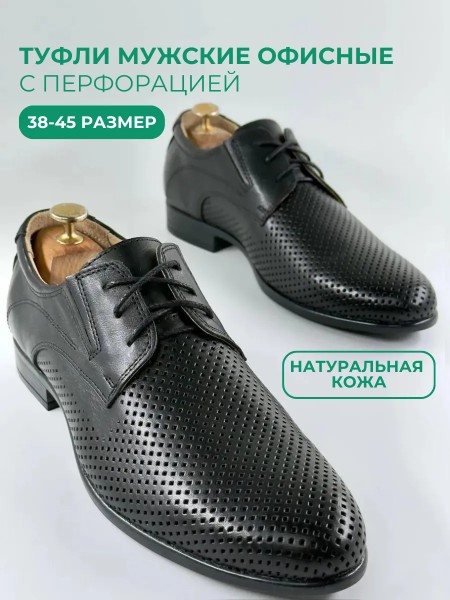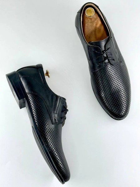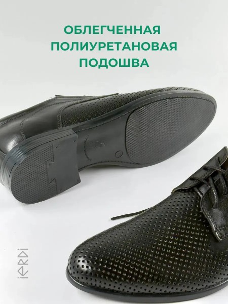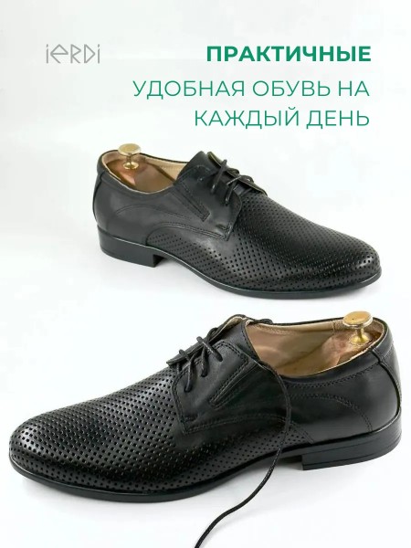 Мужские черные туфли с перфорацией от бренда IERDI - идеальный вариант комфортной классической обуви на лето, теплую весну и осень.