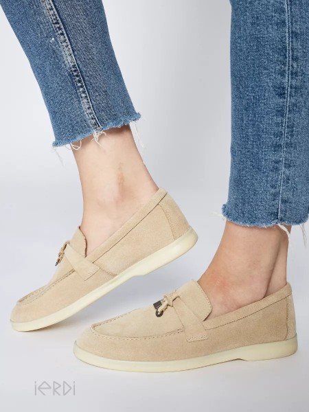 Бежевые женские лоферы из натуральной замши от бренда IERDI. Эти замшевые туфли лоферы в стиле Лоро Пиано отлично подойдут для офиса, школы и на каждый день для модных женщин и девушек. Подходят на стандартную и узкую ширину стопы и стандартный или низкий подъем