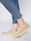 Круглогодичные лоферы на плоской подошве выполнены из натуральной замши, которая обеспечивает комфорт в использовании. Декорированы кисточками, материал стельки - натуральная кожа. Размерный ряд - от 32 до 41. Цвет - бежевый. Практичная модель отлично будет сочетаться как с деловым, так и с повседневным стилем одежды.