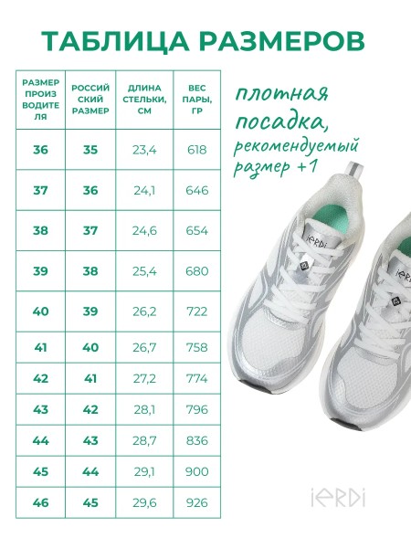 При интенсивных пробежках стопа может немного увеличиваться в объеме, поэтому рекомендуется выбирать кроссовки на размер больше. Новые мужские кроссовки от бренда IERDI - идеальная обувь для спорта. Высокая двойная подошва отличается эластичностью и хорошо амортизирует, она состоит из пены, имеющей структуру соты. Сочетание ЭВА (Phylon) и резины делает подошву мягкой, но износостойкой. Стелька изготовлена из инновационного упругого и стабильного полимера, дышит и отводит влагу, прочная. Верх кроссовок выполнен из полиэстра и нейлона, внутренняя подкладка - из полиэстра. Комбинированный текстиль дышит и выдерживает интенсивные нагрузки, но не подойдет для бега в сильный дождь, однако высокая подошва и защищенные "борта" делают её универсальной. Установлены классические хлопковые шнурки для удобства посадки по ноге. На поверхности кроссовок светоотражающие элементы, а также люминофорное покрытие, светящееся в темноте от накопленного света, это дополнительные элементы защиты от подделок и эффект ВАУ! для окружающих.