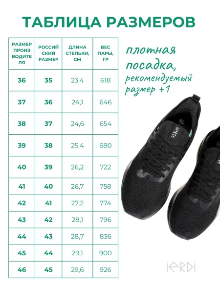 При интенсивных пробежках стопа может немного увеличиваться в объеме, поэтому рекомендуется выбирать кроссовки на размер больше. Новые мужские кроссовки от бренда IERDI - идеальная обувь для спорта. Высокая двойная подошва отличается эластичностью и хорошо амортизирует, она состоит из пены, имеющей структуру соты. Сочетание ЭВА (Phylon) и резины делает подошву мягкой, но износостойкой. Стелька изготовлена из инновационного упругого и стабильного полимера, дышит и отводит влагу, прочная. Верх кроссовок выполнен из полиэстра и нейлона, внутренняя подкладка - из полиэстра. Комбинированный текстиль дышит и выдерживает интенсивные нагрузки, но не подойдет для бега в сильный дождь, однако высокая подошва и защищенные "борта" делают её универсальной. Установлены классические хлопковые шнурки для удобства посадки по ноге. На поверхности кроссовок светоотражающие элементы, а также люминофорное покрытие, светящееся в темноте от накопленного света, это дополнительные элементы защиты от подделок и эффект ВАУ! для окружающих.