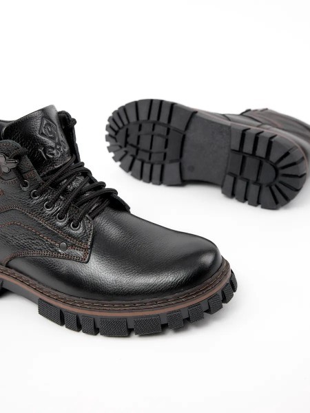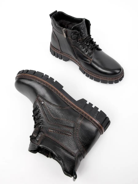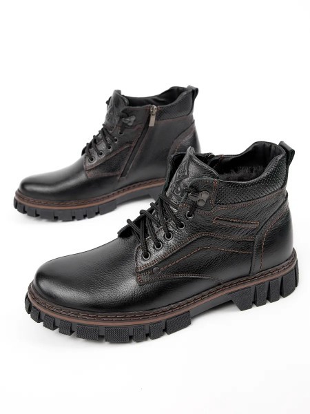 Зимние мужские ботинки IERDI станут верными и надежными спутникам любого мужчины и мальчика подростка даже в самую суровую зиму. Данная модель обуви изготовлена из натуральной кожи и быстро принимает анатомическую форму стопы. Утеплена овечьим мехом, стелька - из натуральной шерсти. Теплые стельки и подкладка сохраняют тепло ног и дарят комфорт зимой. Шнурки и молния позволяют регулировать полноту обуви и посадку на ноге. Нескользящая подошва из термоэластопласта с протектором выдерживает до - 25..-30 С. Рабочие ботинки на тракторной подошве обеспечат хорошую устойчивость на скользкой дороге, а также отлично подойдут для ежедневной носки. Модель ботинок на молнии может маломерить и подойдёт тем, у кого узкая или стандартная стопа и невысокий подъем. В зимней обуви IERDI вы будете выглядеть модно и стильно всегда. Срок службы не менее 2 сезонов.