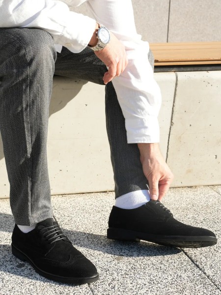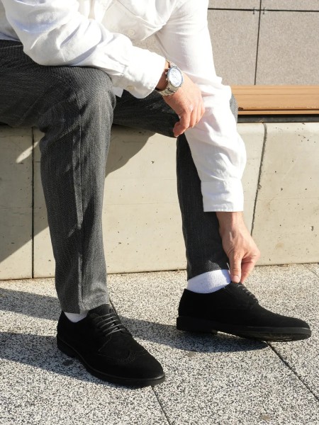 Классические офисные туфли IERDI на шнурках с закрытой пяткой – неотъемлемый элемент делового гардероба успешного мужчины, который предпочитает классику в гардеробе. Смотрятся стильно и элегантно, а благодаря удобной облегченной подошве вы не устанете даже после длительной носки. Приобретая мужские замшевые полуботинки, вы получаете не только качественную и комфортную обувь, но и модный и стильный аксессуар. Они отлично сочетаются с джинсами, брюками и спортивной одеждой, делая ваш образ завершенным и уникальным.
