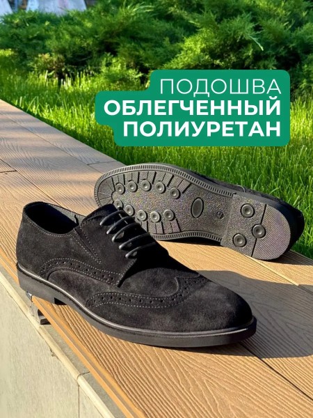 Мужские туфли от бренда IERDI с облегченной подошвой из полиуретана из натуральной замши – классический выбор стильного мужчины. Вживую цвет натуральной замши может отличаться от фото. Натуральный материал, устойчивый каблук и качественная легкая подошва делают эту обувь идеальной для любой ситуации: она отлично подойдет как для офиса, так и для прогулок в парке. Пара мужских оксфордов на классическом каблуке универсального черного цвета подойдут как для повседневной носки, так и для свадебной церемонии, выпускного вечера или любого другого праздничного мероприятия. Подойдут для сменки в школе.