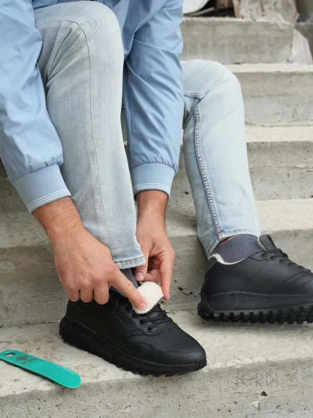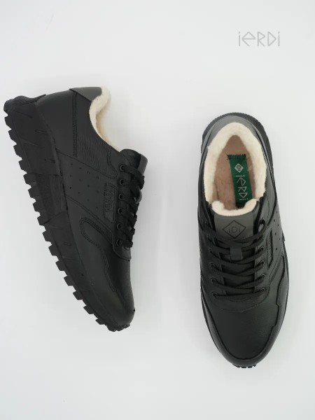 Верх выполнен из натуральной кожи. Мужские кроссовки на зиму отлично удерживают ногу, не вызывают неудобств при долгой ходьбе, обеспечивают комфорт и поддержку ноги, а также защиту от ушибов и травм. Подкладка выполнена из теплого шерстяного меха (40% - натуральная овечья шерсть, 60% - полиэстер). Кроссовки мужские из кожи оснащены шнуровкой, которая позволяет регулировать высоту подъёма ноги. В стильной кожаной зимней обуви вы будете чувствовать себя комфортно в офисе, школе и на свидании.