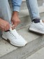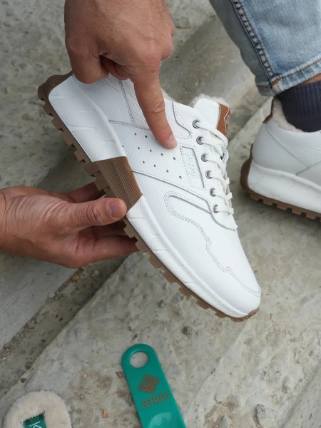 Верх выполнен из натуральной кожи. Мужские кроссовки на зиму отлично удерживают ногу, не вызывают неудобств при долгой ходьбе, обеспечивают комфорт и поддержку ноги, а также защиту от ушибов и травм. Подкладка выполнена из теплого шерстяного меха (40% - натуральная овечья шерсть, 60% - полиэстер). Кроссовки мужские из кожи оснащены шнуровкой, которая позволяет регулировать высоту подъёма ноги. В стильной кожаной зимней обуви вы будете чувствовать себя комфортно в офисе, школе и на свидании.