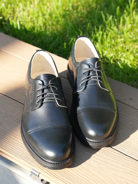 Чтобы надолго сохранить внешний вид вашей кожаной обуви рекомендуем использовать специальный черный крем для гладкой кожи от бренда IERDI и специальную щетку. А чтобы избежать замятия задника при надевании - не забывайте про использование обувной ложки или рожка.