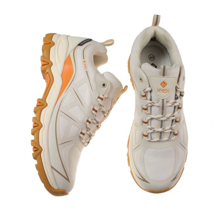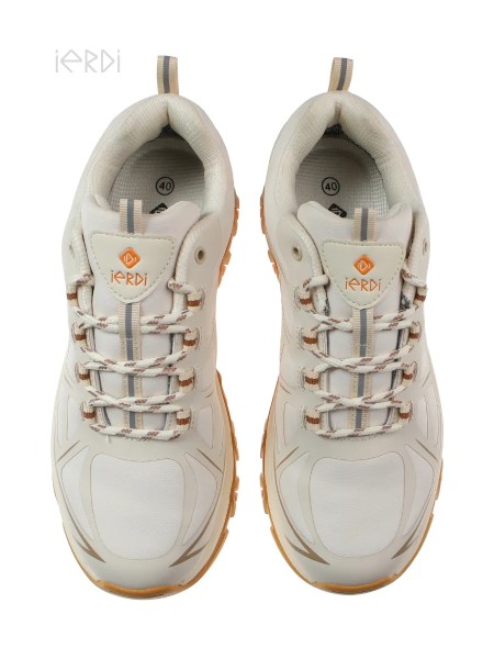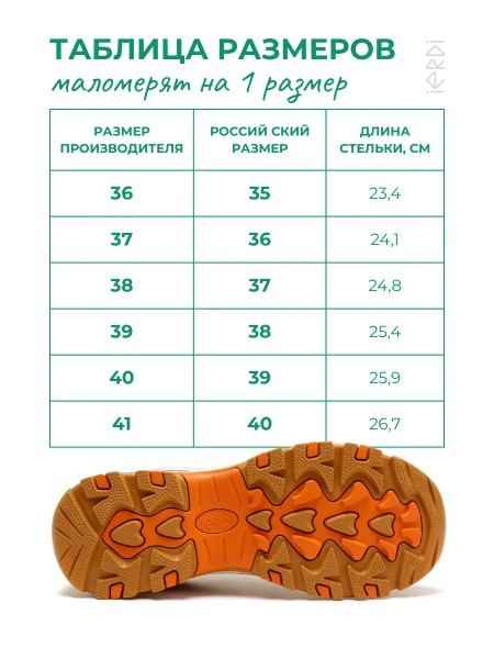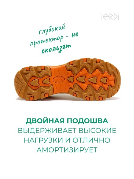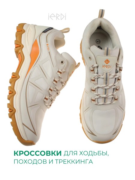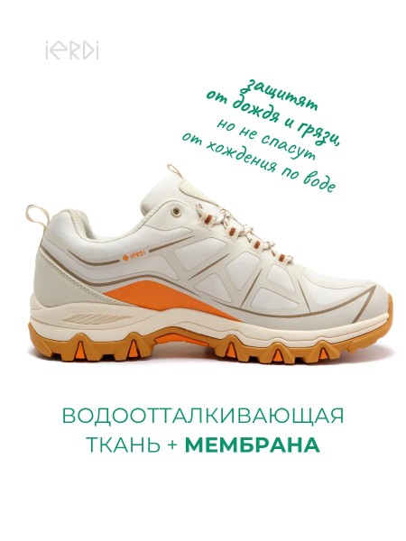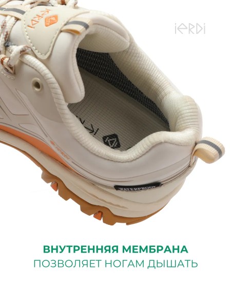 Новые женские кроссовки от бренда IERDI - идеальная обувь для туризма и на каждый день, в том числе осенью. Сочетание ЭВА (Phylon) и резины делает подошву износостойкой. Стелька изготовлена из инновационного упругого и стабильного полимера, дышит и отводит влагу, прочная. Бежевый цвет подошвы в сочетании с оранжевым смотрится стильно и практично. Верх демисезонных кроссовок выполнен из водоотводящего материала, внутренняя подкладка - из мембраны. Комбинированный текстиль дышит и выдерживает интенсивные нагрузки, подойдет для походов в холодный сезон. В случае необходимости можно использовать водоотталкивающий спрей. Рекомендуем использовать эти кроссовки в диапазоне температур -6С ...+ 15 С.