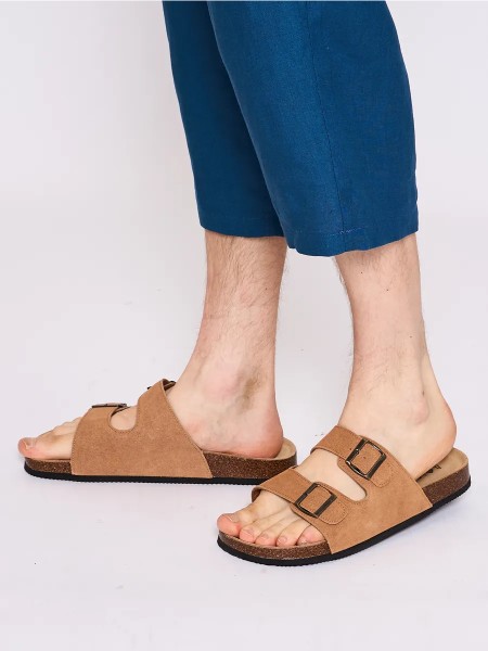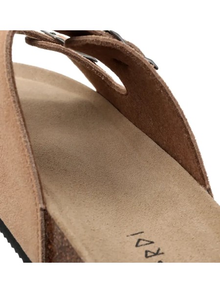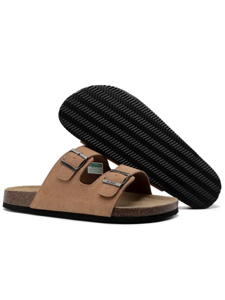 Эти летние шлепки идеально подходят для активного отдыха на пляже и прогулок по улицам города. Изготовленные из натуральной замши, они обеспечивают комфорт и стильный внешний вид. Шлепанцы имеют пробковую подошву, которая амортизирует каждый шаг, позволяя вашим ногам чувствовать себя легко даже в самый жаркий день.