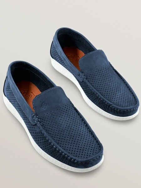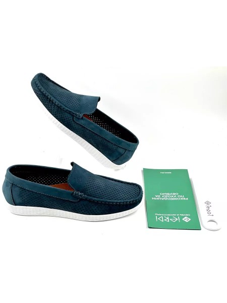 Синие мужские мокасины с перфорацией станут модным дополнением casual или школьных образов. Мужские мокасины из натуральной кожи будут уместны в офисе, на отдыхе и на прогулке по городу.