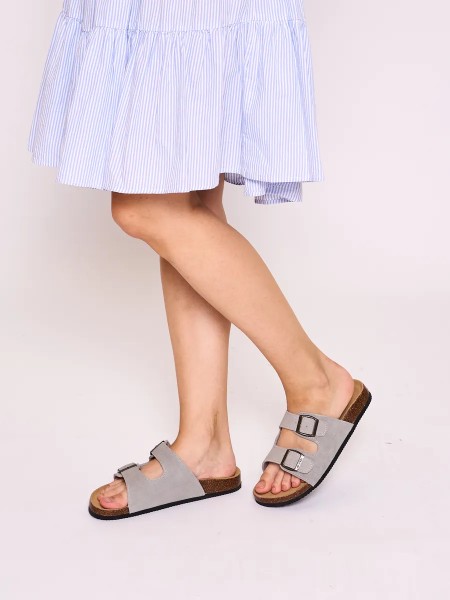 Эти летние шлепки идеально подходят для активного отдыха на пляже и прогулок по улицам города. Изготовленные из натуральной замши, они обеспечивают комфорт и стильный внешний вид. Шлепанцы имеют пробковую подошву, которая амортизирует каждый шаг, позволяя вашим ногам чувствовать себя легко даже в самый жаркий день.