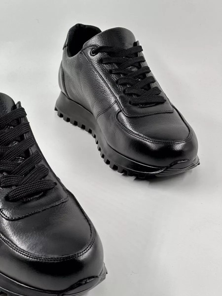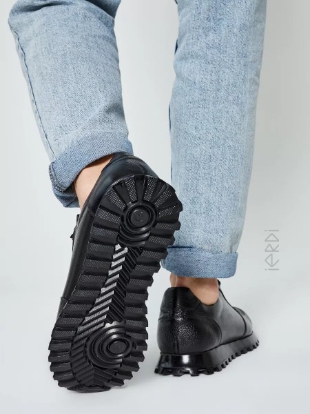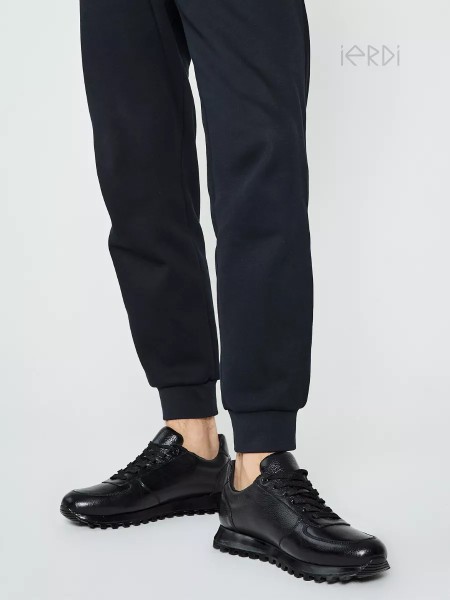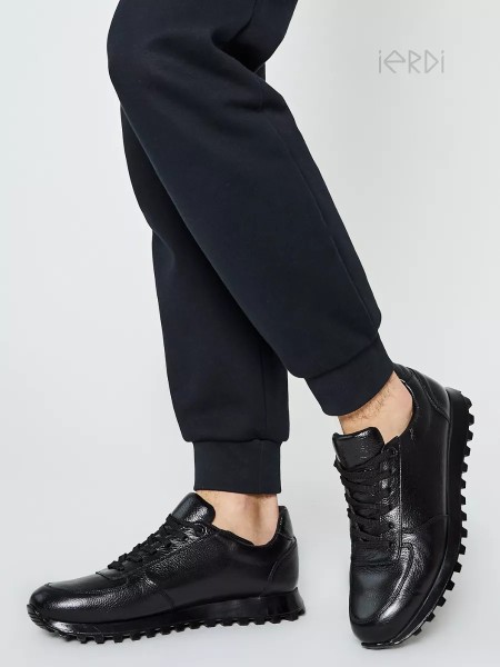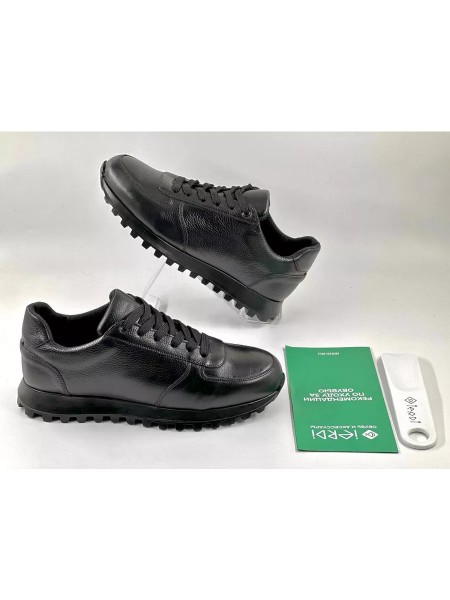 Мужские классические кроссовки от бренда IERDI отлично подойдут на весну и лето. Модель выполнена из качественной натуральной кожи универсального черного цвета. Будет хороша, в том числе осенью и в демисезон. Высокая черная ТЭП-подошва амортизирует, создавая комфорт при ходьбе. Стелька изготовлена из эко-кожи, не впитывает запах, не окрашивает носки, износоустойчива. Верх модели дополнен шнуровкой для комфортной посадки полуботинок на ноге.