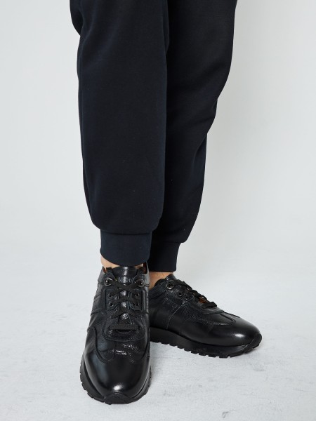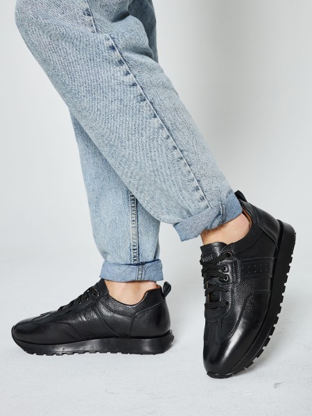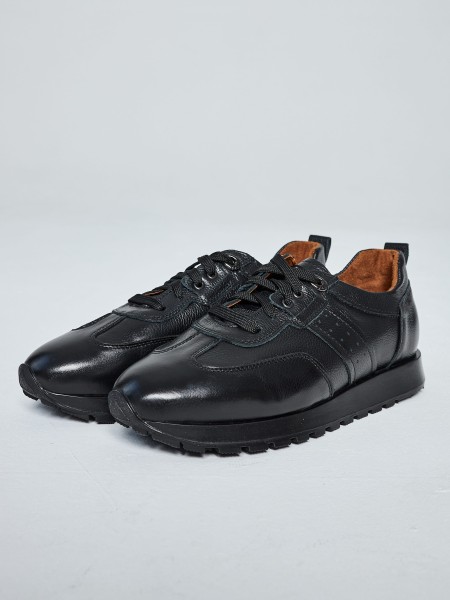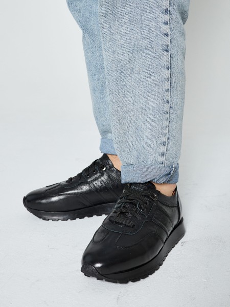 Выполнены из натуральной кожи универсального черного цвета. Высокая черная подошва из термопластичной резины отлично амортизирует, а усиленный рисунок протектора гарантирует хорошее сцепление с дорогой.