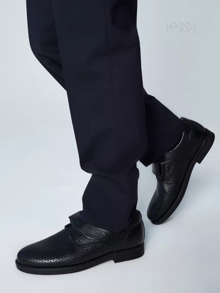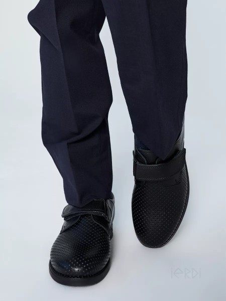 Классические кожаные школьные туфли на липучке для мальчиков-подростков от бренда IERDI. Эти детские туфли выполнены из натуральной кожи, внутри также кожаная стелька. Сквозная перфорация в носовой части позволяет ногам дышать, поэтому вашему ребенку будет комфортно ходить в них весь день. Умеренно гибкая ТЭП-подошва добавит комфорта для повседневной носки. В верхней части туфель расположена липучка, которая позволяет комфортно надевать и снимать туфли, без завязывания шнурков. Пятка закрытая. Полнота - средняя. Размерный ряд - с 31 по 38.