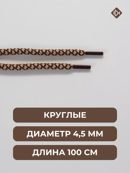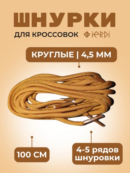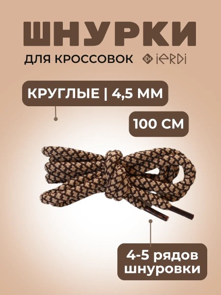 Коричнево-бежевые шнурки от бренда IERDI - универсальные шнурки для мужской, женской и детской обуви любого цвета. Длина шнурков 100 см, а диаметр 4,5 мм. Они идеально подойдут для 4-5 рядов шнуровки, например, для кроссовок, ботинок и полуботинок. Данная модель отличается качеством - хорошо держит шнуровку, не развязываясь при беге и ходьбе и надежно фиксируя обувь на ноге. Темные шнурки подойдут как для спортивной так и для повседневной обуви. Данная модель так же может использоваться как шнурок для одежды.