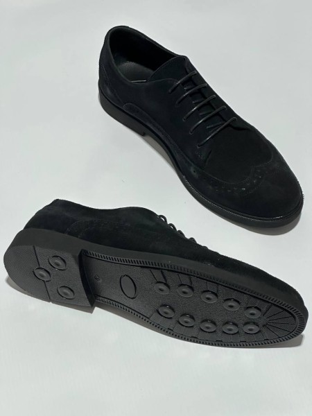 Мужские замшевые туфли черного цвета от бренда IERDI – идеальный выбор для стильного мужчины, который предпочитает классику. Натуральная замша, устойчивый каблук и качественная легкая подошва делают эту обувь универсальной: она подойдет как для офиса, так и для прогулок в парке. Модель представлена в широком размерном ряду.