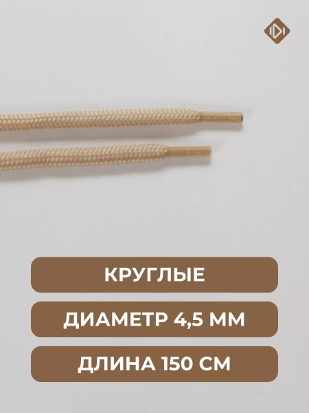 Бежевые шнурки от бренда IERDI - универсальные шнурки для мужской, женской и детской обуви любого цвета. Длина шнурков 150 см, а диаметр 4,5 мм. Они идеально подойдут для 8-9 рядов шнуровки, например, для низких берцев, высоких кроссовок или тимберлендов. Данная модель отличается качеством - хорошо держит шнуровку, не развязываясь при беге и ходьбе и надежно фиксируя обувь на ноге. Шнурки телесного цвета подойдут как для спортивной так и для повседневной обуви. Данная модель так же может использоваться как шнурок для одежды.