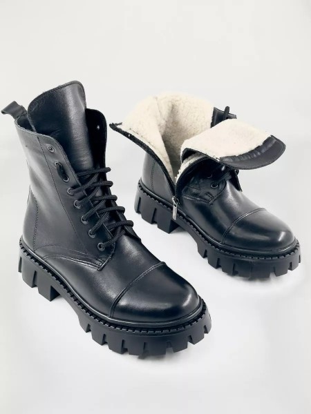 Будьте внимательны - маломерят на 1 размер! Зимние ботинки тимберленды на шерсти — универсальная модель обуви, которая готова к любым капризам погоды как зимой, так и в демисезон. Эти женские берцы выполнены из натуральной кожи черного цвета и утеплены шерстяным мехом (50% - натуральная овечья шерсть, 50% - синтетические волокна), что обеспечивает благоприятный микроклимат для ног и дарит тепло и комфорт даже в морозы до -20 С.