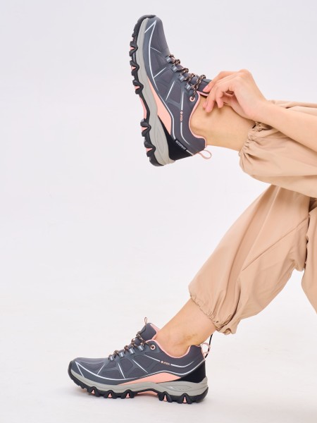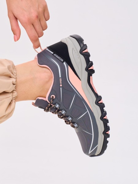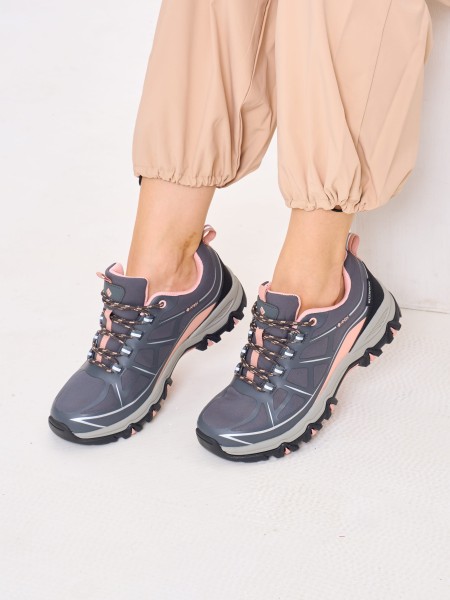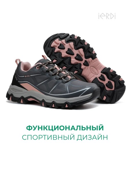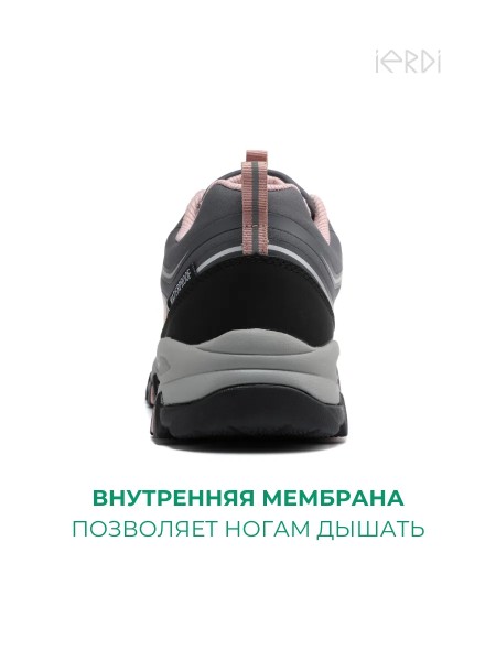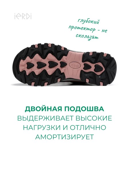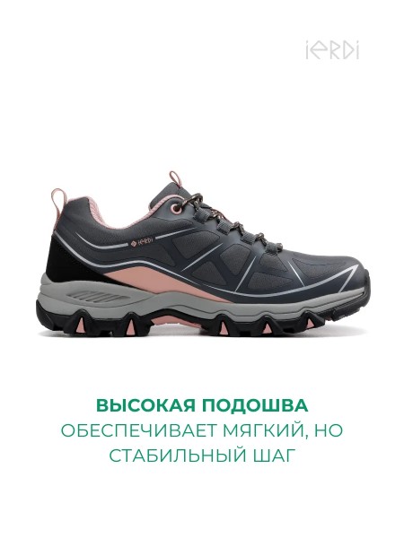 Новые женские кроссовки от бренда IERDI - идеальная обувь для туризма. Сочетание ЭВА (Phylon) и резины делает подошву износостойкой. Стелька изготовлена из инновационного упругого и стабильного полимера, дышит и отводит влагу, прочная. Серый цвет подошвы в сочетании с розовым смотрится стильно и практично. Верх кроссовок выполнен из водоотводящего материала , внутренняя подкладка - из водоотталкивающей мембраны. Это не летняя обувь, будет жарко, рекомендуем носить в погоду не теплее 15 C! Комбинированный текстиль дышит и выдерживает интенсивные нагрузки, подойдет для походов в сильный дождь.