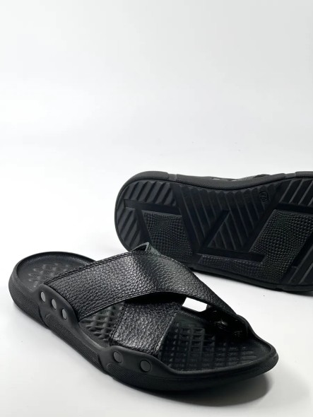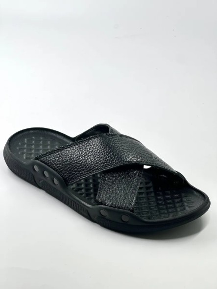 Верхняя кожаная часть шлепок выполнена в виде скрещивающихся ремешков. Ортопедическая подошва этих сандалий подарит мягкость и легкость, что делает их отличным решением для дома, дачи и улицы. Темные спортивные сланцы хорошо впишутся в гардероб любого мужчины или подростка. Благодаря классическому дизайну эти пантолеты будут актуально смотреться на весенних прогулках вдоль моря или береговой линии. А также будут комфортны как комнатные тапки.