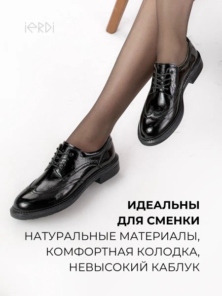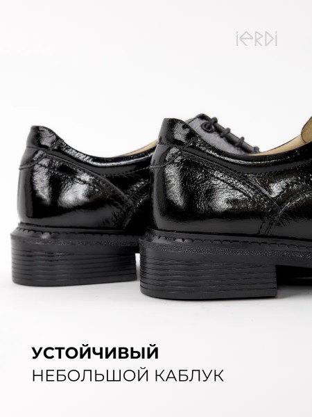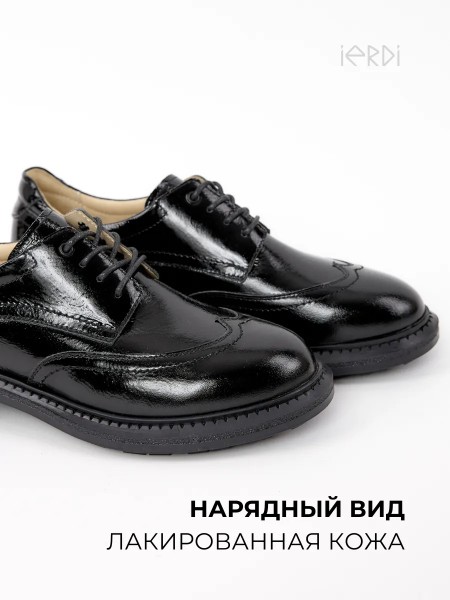 Классические закрытые туфли из натуральной кожи от бренда IERDI. Выполнены из мягкой кожи, подкладка и стелька также кожаные. Верх дополнен шнуровкой для удобства посадки на ноге. Легкая ТЭП-подошва с небольшим устойчивым каблуком сделает носку данной пары максимально комфортной. Размерный ряд с 36 по 40 размер, поэтому они идеально подойдут как для девочек-подростков, так и для женщин. Эта демисезонная модель лоферов подойдет для круглогодичного использования в качестве сменки в школе и офисе, а также для носки по улице осенью и весной. Стильно смотрится со школьной формой и офисной одеждой, подойдет к юбке и брюкам. Покрыты лаком, что делает их отличной нарядной обувью для праздника. Туфли будут уместны на праздничных и торжественных мероприятиях.