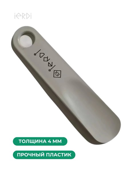 Удобный рожок для обуви выполнен из пластика для повышенной прочности, компактный размер; ложка для обуви и для надевания обуви от бренда IERDI поможет избежать заломов и деформирования задника на туфлях, кроссовках и другой обуви. Полезный аксессуар для обуви обеспечит сохранение формы любой, даже модельной, обуви (не деформирует задник). Аксессуар должен храниться у каждого в прихожей в каждой семье! Можно брать в школу, в университет, на работу и да, Вы не ошиблись, ложка может прослужить от школьной раздевалки до офиса во взрослой жизни, особенно ложки - толщина 4,5 мм.