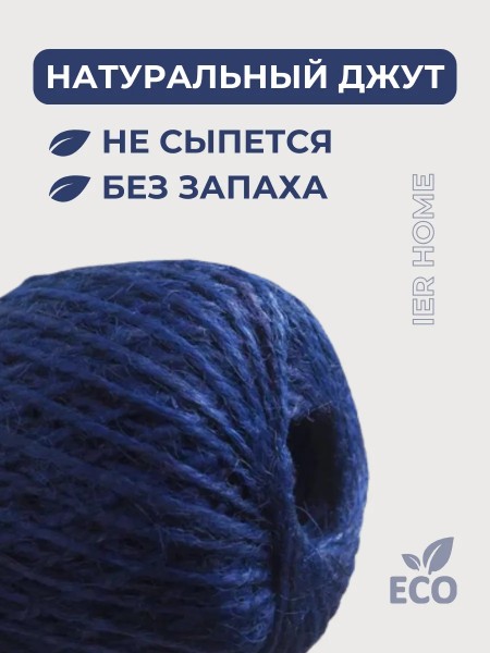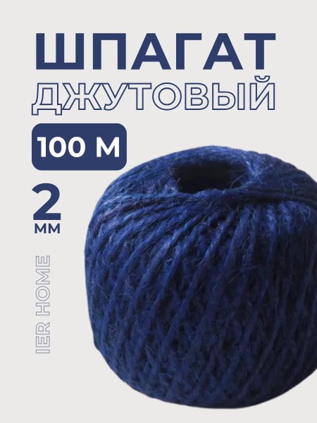 Синий джутовый шпагат премиум качества от бренда IERDI – это прочный и универсальный материал, идеально подходящий для различных задач. Намотка длиной 100 метров и толщина нитки 2 мм делают его удобным для использования в рукоделии, садоводстве, строительстве и декоре. Изготовленный из натурального джута, 2х ниточный шпагат обладает высокой прочностью (плотность 1120 текс - две нити по 560 текс) и износостойкостью, а также экологически безопасен. Тонкая джутовая веревка станет незаменимым помощником в реализации ваших творческих идей и практических решений.