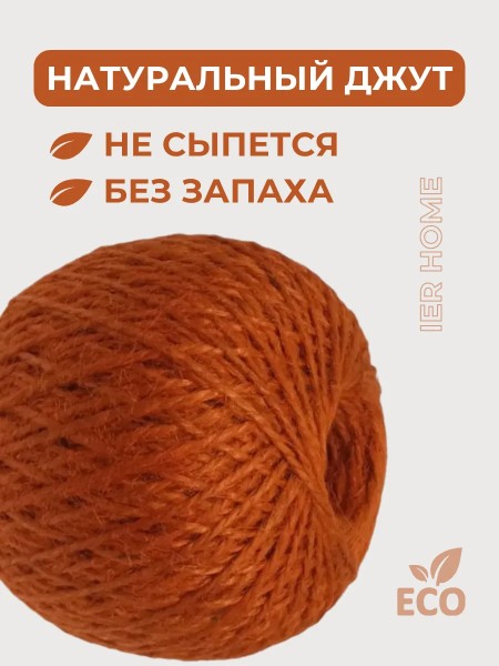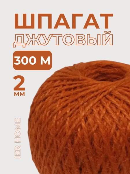 Оранжевый джутовый шпагат премиум качества от бренда IERDI – это прочный и универсальный материал, идеально подходящий для различных задач. Намотка длиной 300 метров и толщина нитки 2 мм делают его удобным для использования в рукоделии, садоводстве, строительстве и декоре. Изготовленный из натурального джута, 2х ниточный шпагат обладает высокой прочностью (плотность 1120 текс - две нити по 560 текс) и износостойкостью, а также экологически безопасен. Тонкая джутовая веревка станет незаменимым помощником в реализации ваших творческих идей и практических решений.