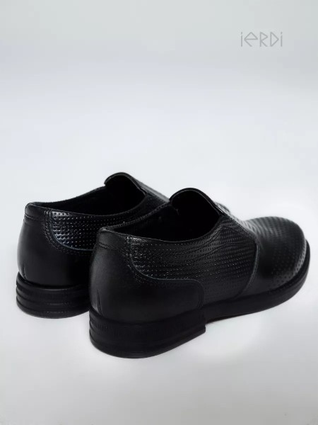 Классические кожаные школьные туфли для мальчиков-подростков от бренда IERDI. Эти детские туфли выполнены из натуральной кожи, внутри также кожаная стелька. Сквозная перфорация позволяет ногам дышать, поэтому вашему ребенку будет комфортно ходить в них весь день. Умеренно гибкая ТЭП-подошва добавит комфорта для повседневной носки. В верхней части туфель расположены две резинки, что позволяет их комфортно надевать и носить. Пятка закрытая. Полнота - средняя. Размерный ряд - с 31 по 38.