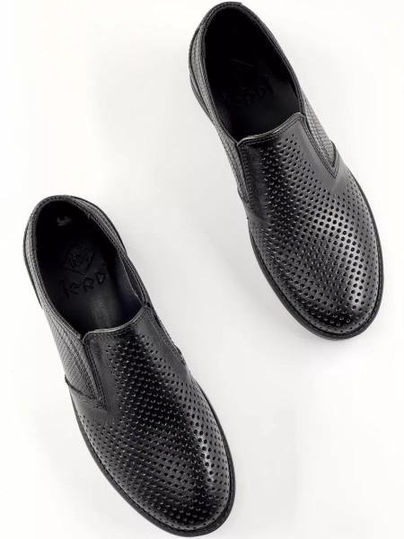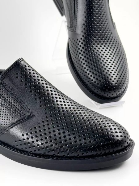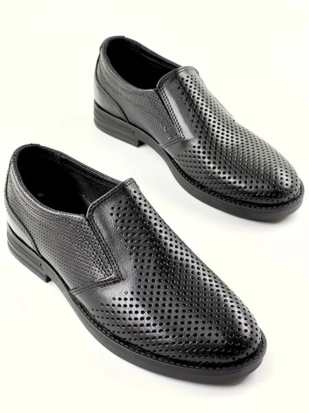Закрытые перфорированные туфли с резинкой плотно облегают ногу. Устойчивый низкий каблук гарантирует комфорт даже при длительной носке в течение всего учебного дня. Обувь подойдет как на широкую, так и на узкую ногу. Для того чтобы избежать боли в ногах и предупредить плоскостопие, не забудьте приобрести ортопедические стельки. Тогда в наших классических черных кожаных туфлях для мальчика комфорт будет гарантирован.