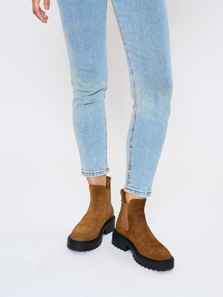 Трендовые женские челси универсального коричневого цвета станут прекрасным завершением любого образа, как из pinterest. Эти легкие элегантные ботинки на устойчивой платформе замечательно впишутся в деловой, рабочий и даже вечерний женский гардероб. Короткие закрытые кэжуал челси из замши будут красиво смотреться как с джинсами или брюками, так и с юбками или платьями. Массивные ботинки - чулки рыжего цвета привлекательны внешне и износостойки за счет качественных материалов. Не забывай про использование водоотталкивающего спрея для замши и ваша пара прослужит вам несколько сезонов.