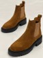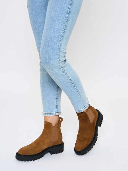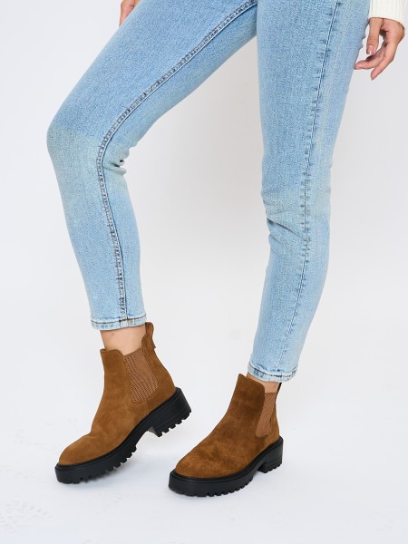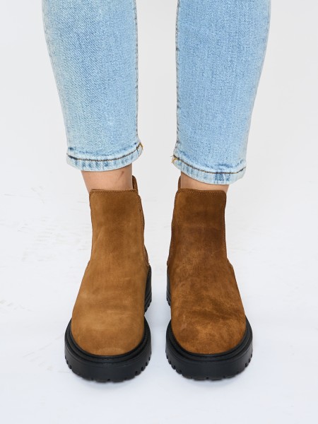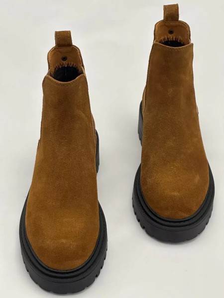 Верх полусапожек выполнен из 100% натуральной замши. Подкладка челси изготовлена из теплой байки - в них будет комфортно до -5 градусов. Благодаря эластичным резиновым вставкам по бокам ботильоны легко надеть и снять. Толстая нескользящая тракторная ТЭП подошва обеспечит хорошую устойчивость даже на самой скользкой дороге. Сбалансированный подъем и мягкая стелька из байки не позволят ноге устать во время долгих прогулок.
