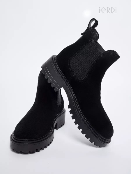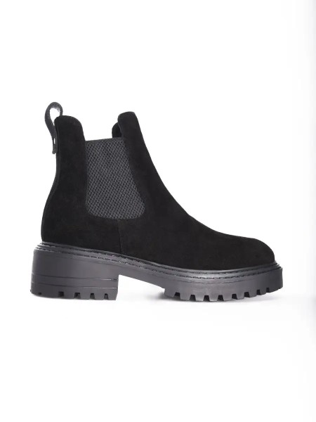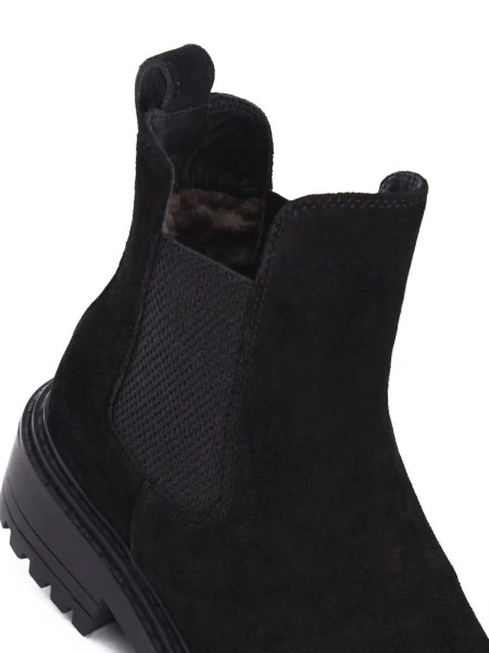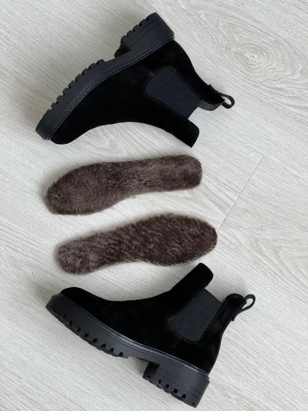 Классические замшевые ботинки уместны в офисе, в университете, в школе. Черный цвет ботинок делает эту модель универсальной и подходящей к любому образу. Замшевые ботинки челси на меху - отличный вариант женской обуви на зимний сезон.