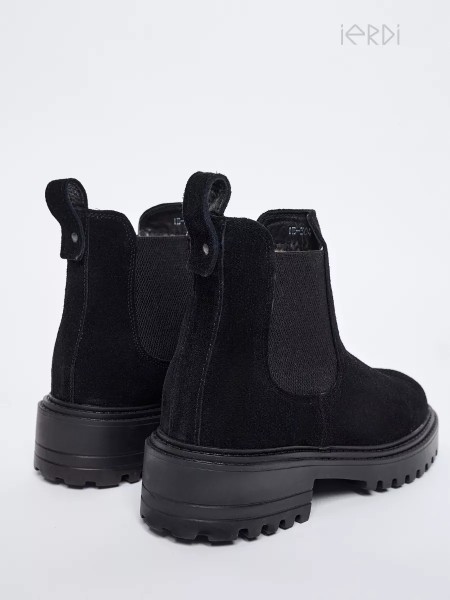 Женские зимние ботинки модели челси от дизайнеров бренда IERDI. Дышащая натуральная замша и мягкий австралийский мех на подкладке обеспечат органичный микроклимат, нескользящая тракторная подошва со сбалансированным подъемом не позволит стопе устать. Обратите внимание: ботинки челси зимние подойдут на стандартную или узкую ногу со стандартным или низким подъемом.